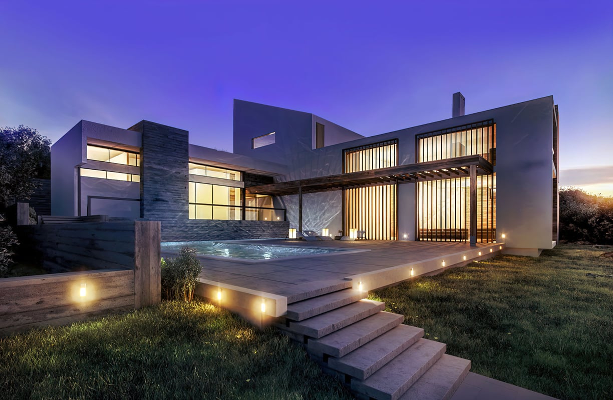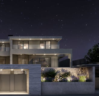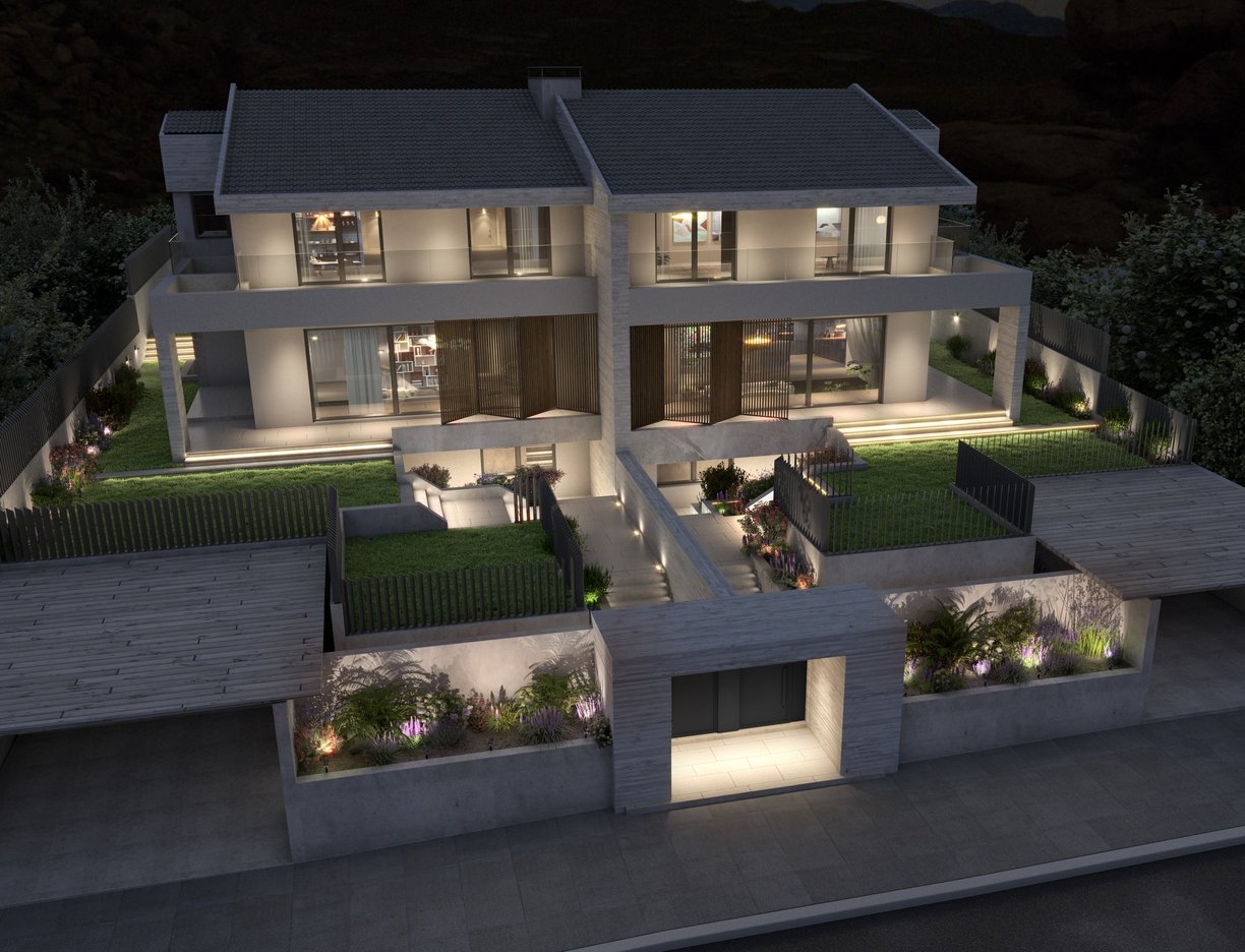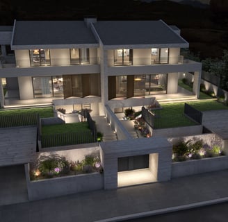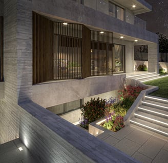 Visualisation and showcase of garden lighting design for a modern apartment complex in Thessaloniki, Greece. Client: Velo